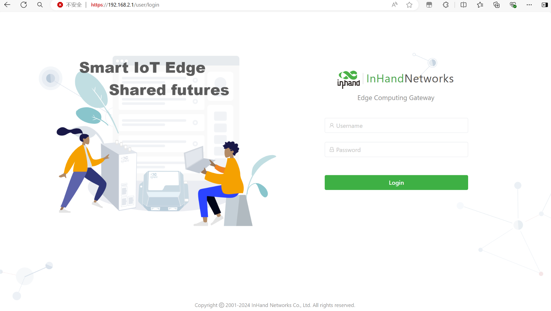IG502 supports the WEB interface management based on IEOS, which is a set of network management and system management programmes developed by InHand and running on Linux system, and IEOS can provide web interface service. Taking the network cable network port inserted into the LAN port as an example, the device login information is as follows: