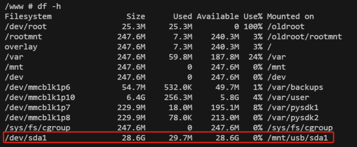 Before disconnecting the USB mass storage device, remember to enter the sync command to prevent data loss. When you disconnect the storage device, exit from the /mnt/usb/sda_<num> directory. If you remain in /mnt/usb/sda_<num>, the automatic uninstall process will fail. If this happens, type umount /mnt/usb/sda_<num> to manually unmount the device!