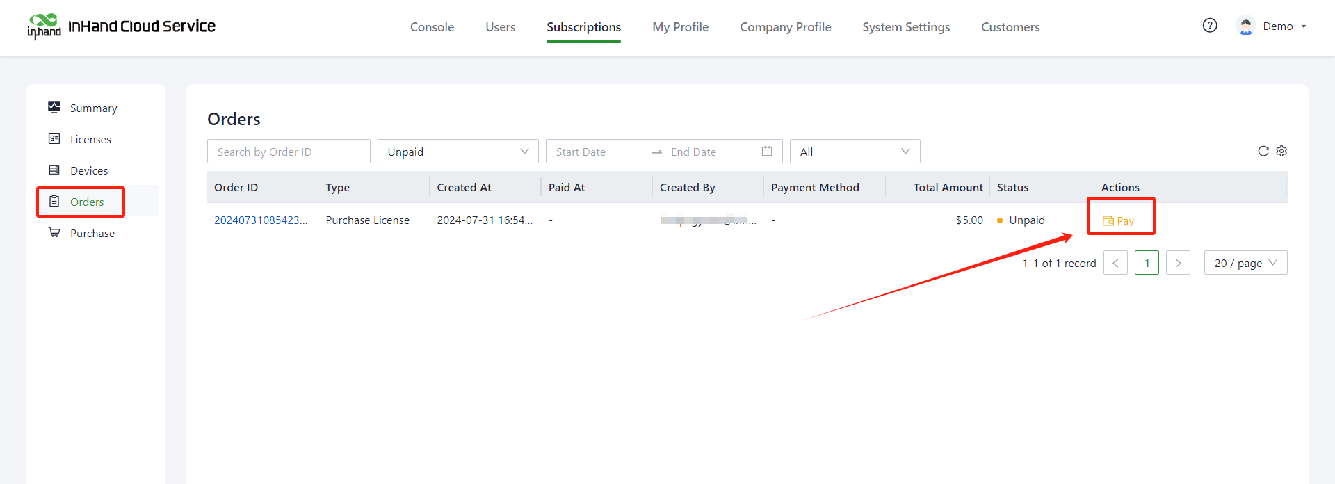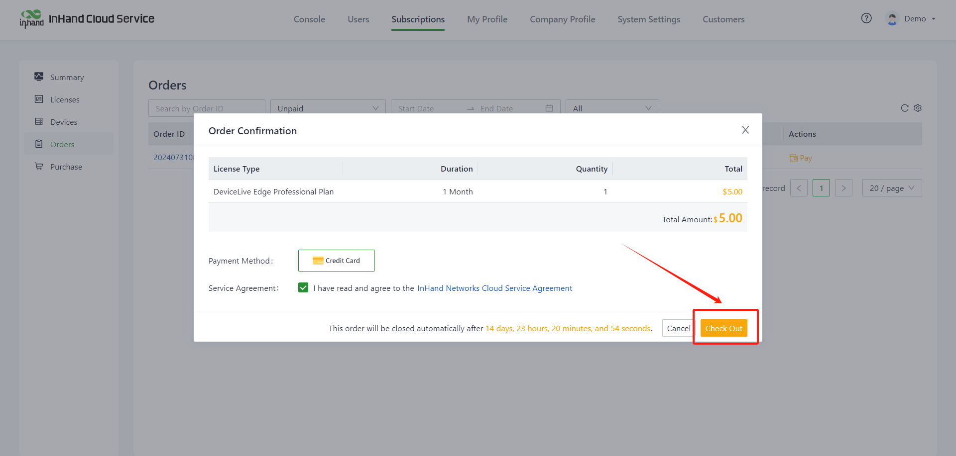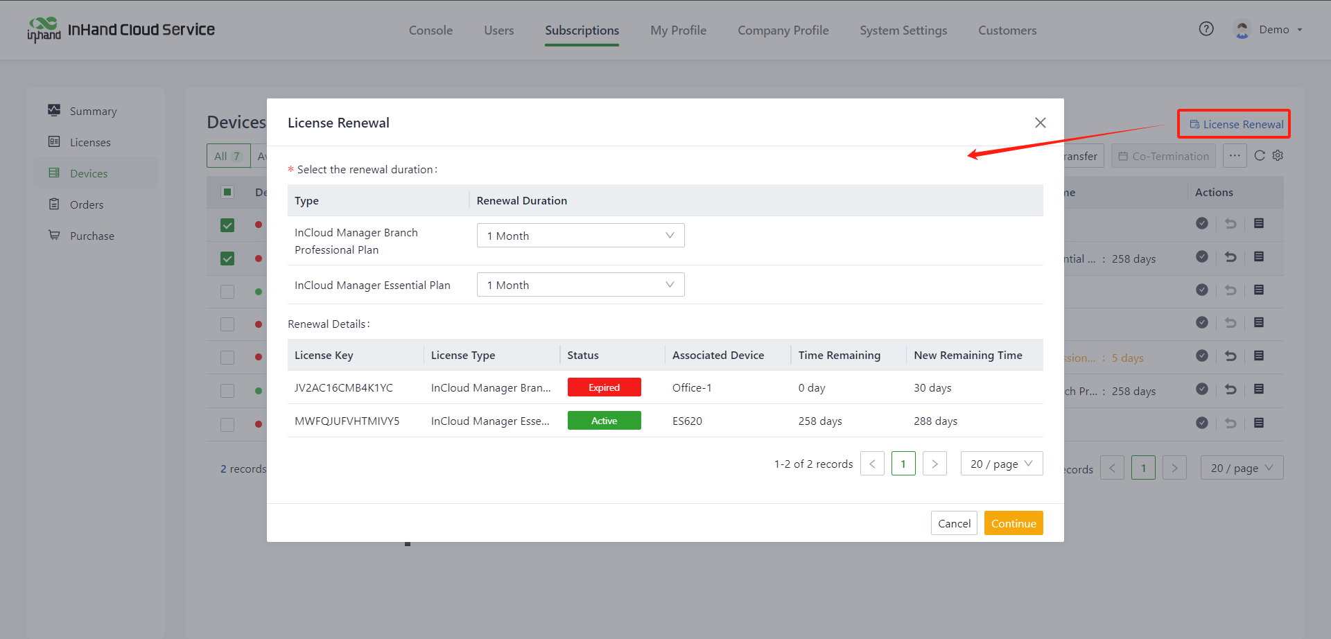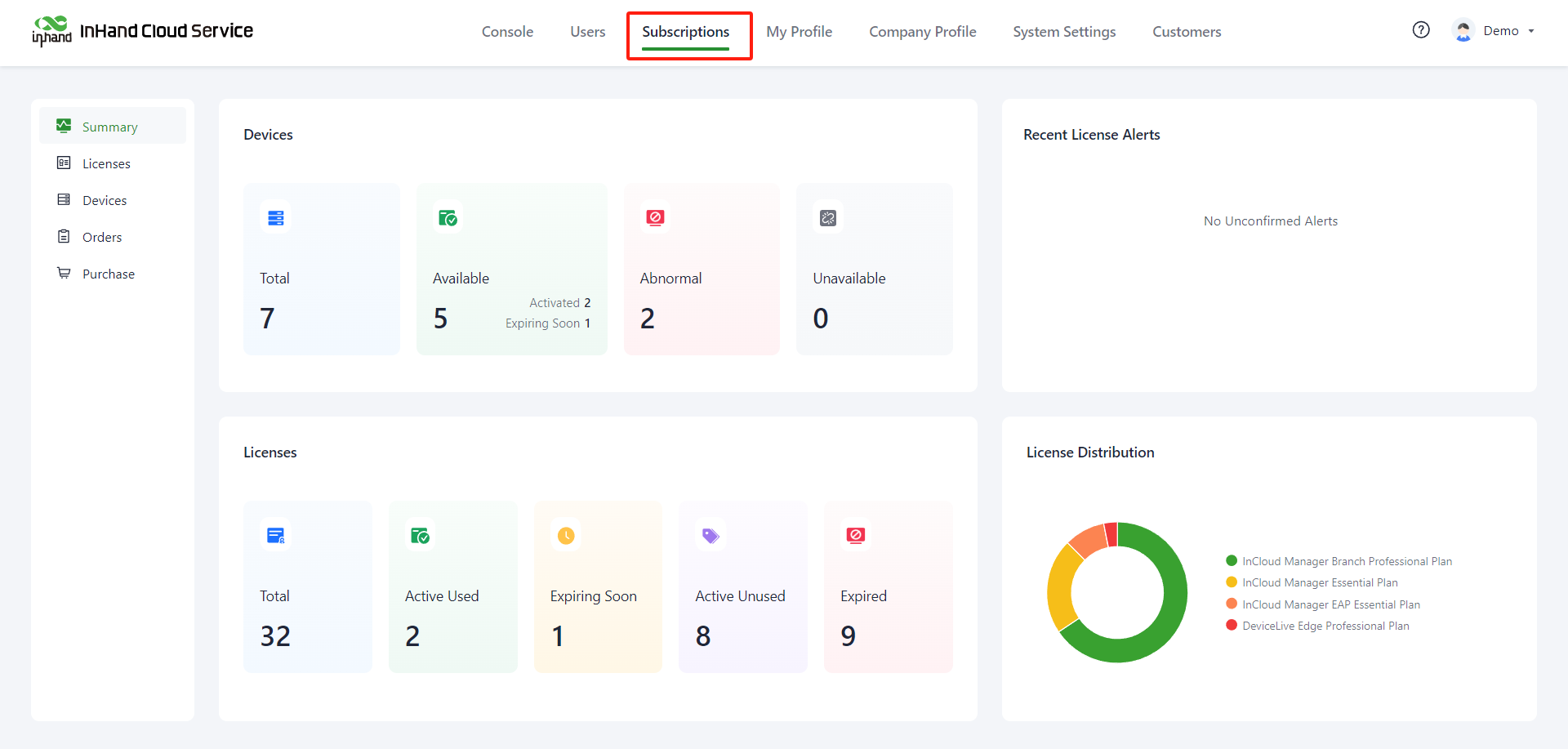 5. Whether the device is bound with a license? If not, you can enter "InHand Cloud Service >> Subscriptions" to bind the license.