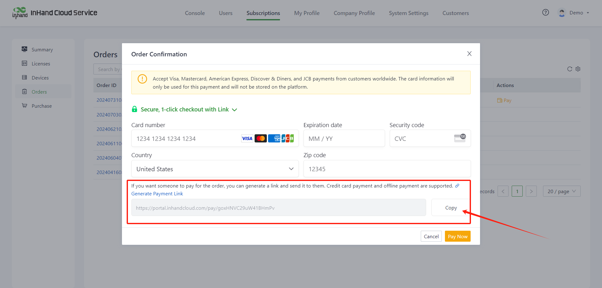 4. Confirm the order, select the payment method, and click to pay.