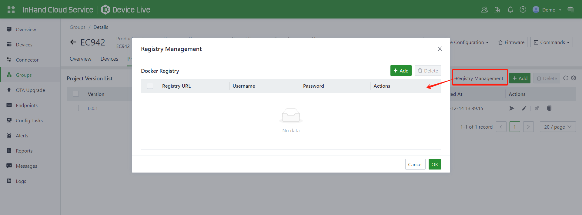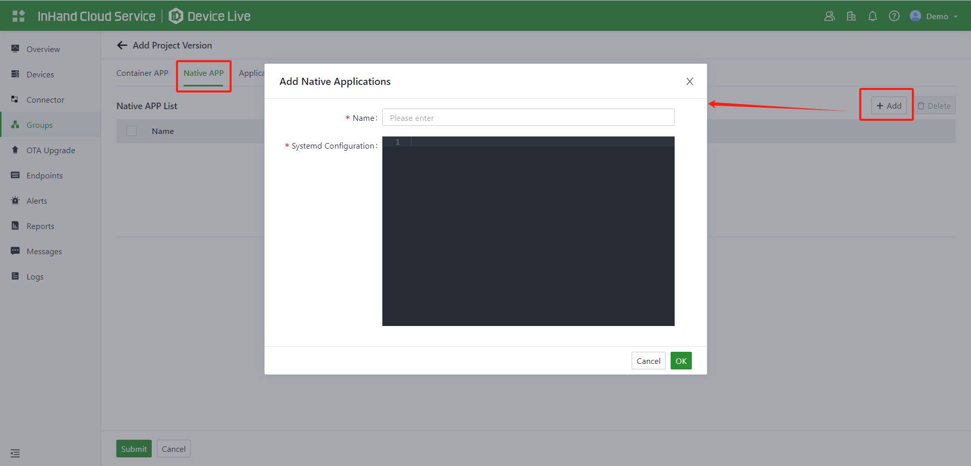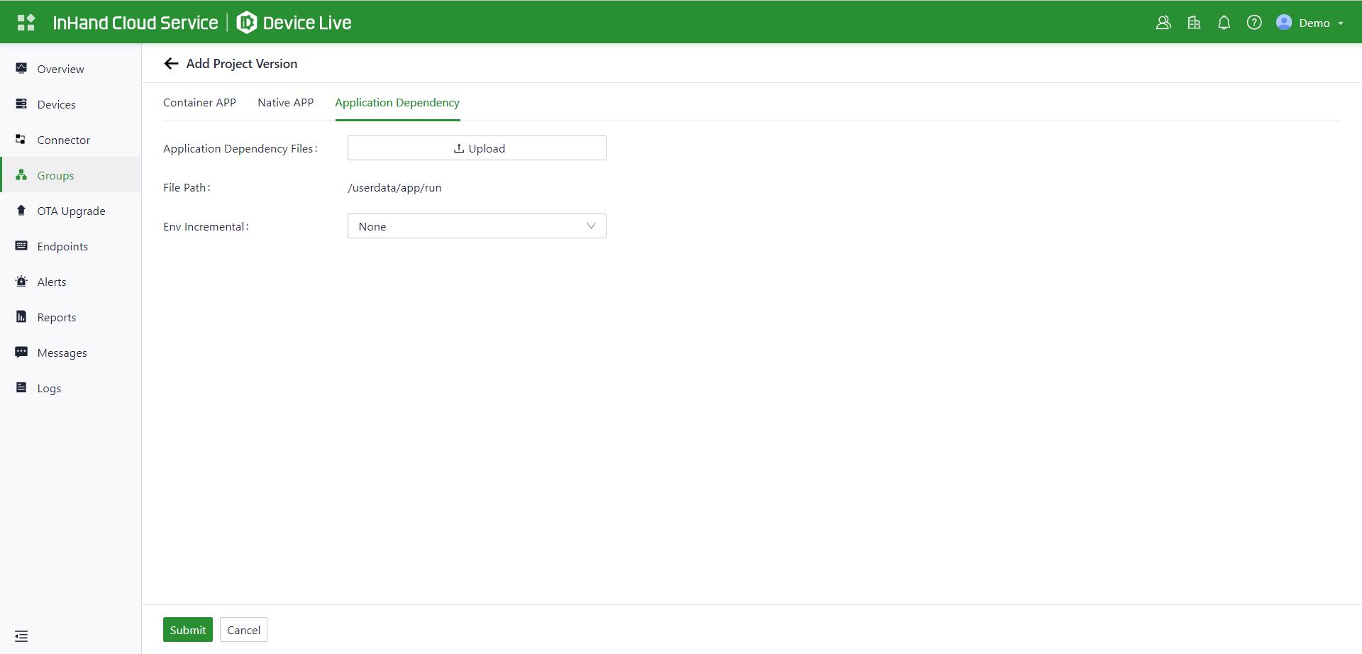 Application | All applications provided by InHand Cloud Service, including InCloud Manager, DeviceLive, and others. |