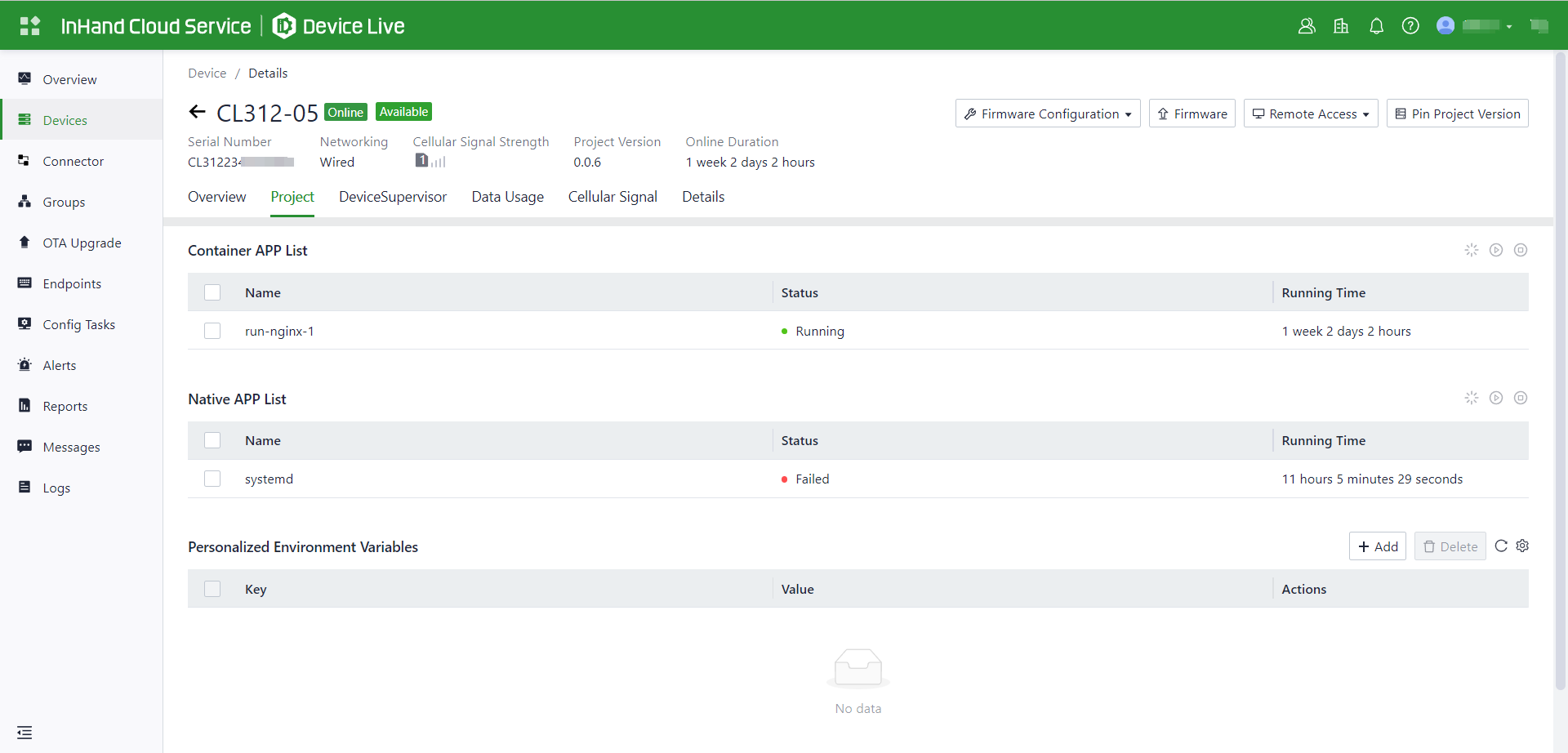 Applications | All applications provided by InHand Networks Cloud Services, including DeviceLive, InCloud Manger, and more. |