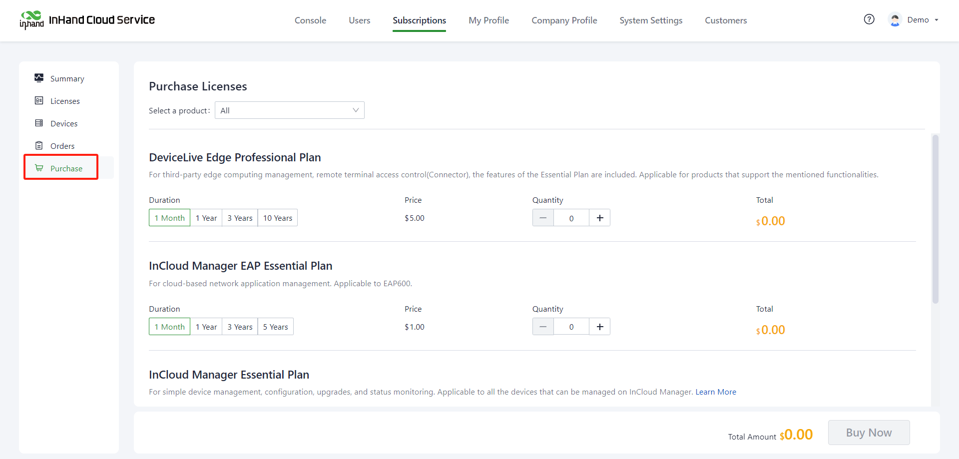 3. Go to the license purchase page, select the required license type, subscription duration and quantity, and click "Buy Now".
