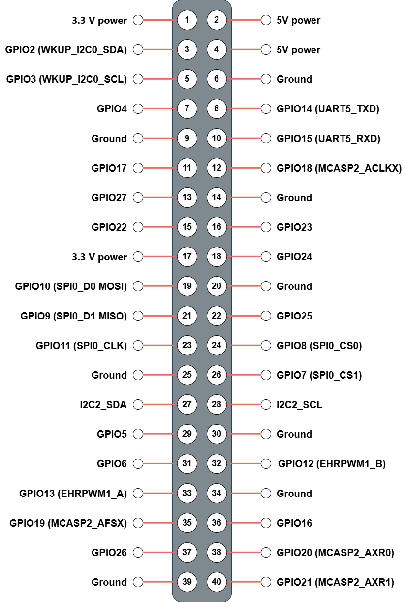 | 18 | GPIO24 | GPIO (GPIO0_40) | gpiochip1 | 40 | — |