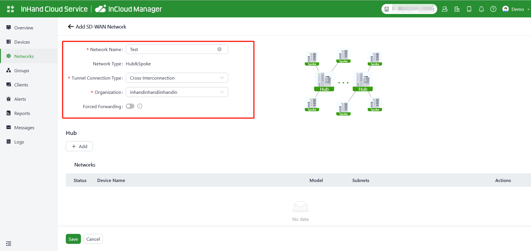 6.After adding the branch devices, click the Save button at the bottom left to successfully create an SD-WAN network.