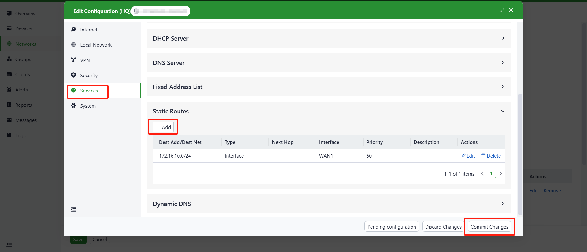 Note: If the subnet you need to configure in the SD-WAN is not displayed on the page, you can click the Edit button to add it in the device's Local Network List.